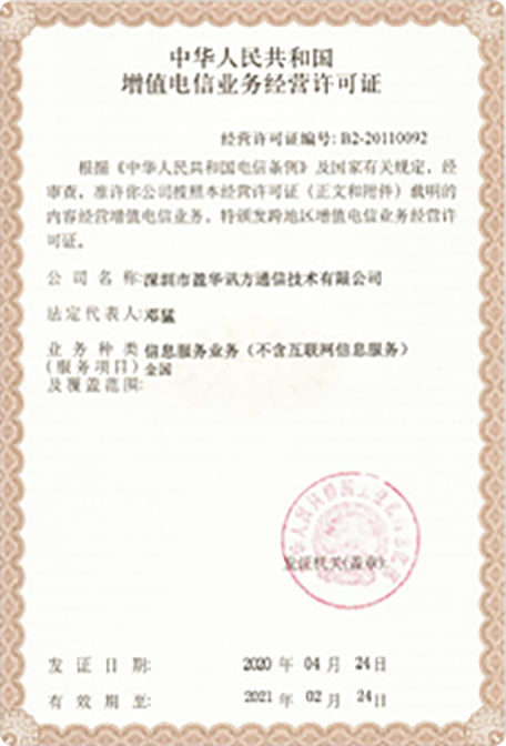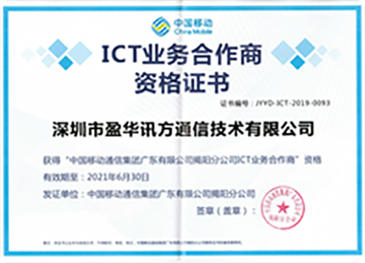 - 盈华ICT业务合作商资格证书