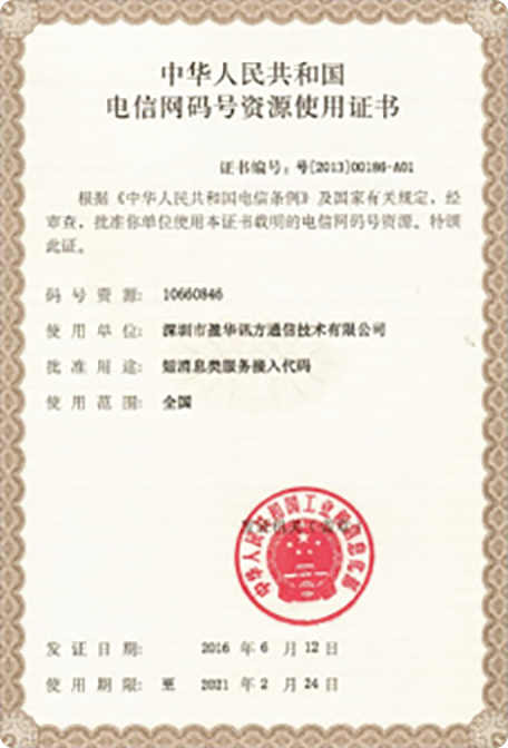 - 电信网码号资源使用证书