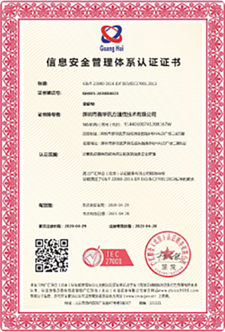 - 信息安全管理体系认证证书