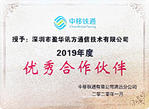 - 中国铁通优秀合作伙伴-清远分公司