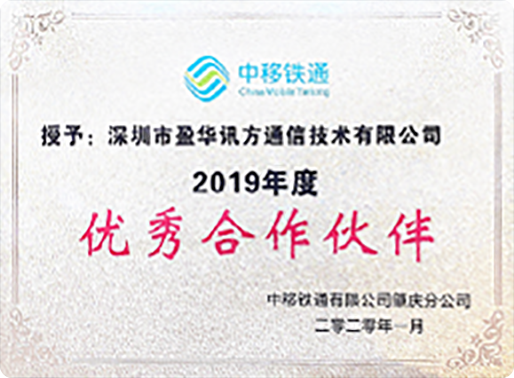 - 中国铁通优秀合作伙伴-肇庆分公司