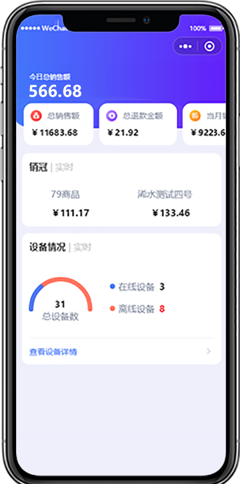 实现补货管理、数据查看、预警消息接收,运营管理等